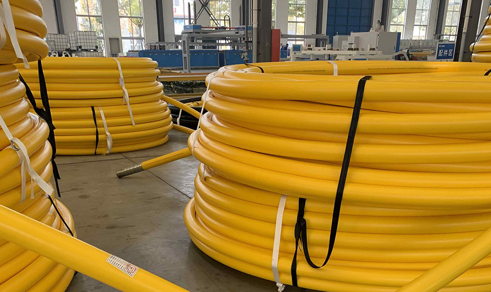 柔韧性极强,弯曲半径≤30D,可盘绕运输(单盘长度达千米级),适配复杂地形、海底弯头及管基不均匀沉降场景,无需热补偿装置,施工效率提升 60% 以上;